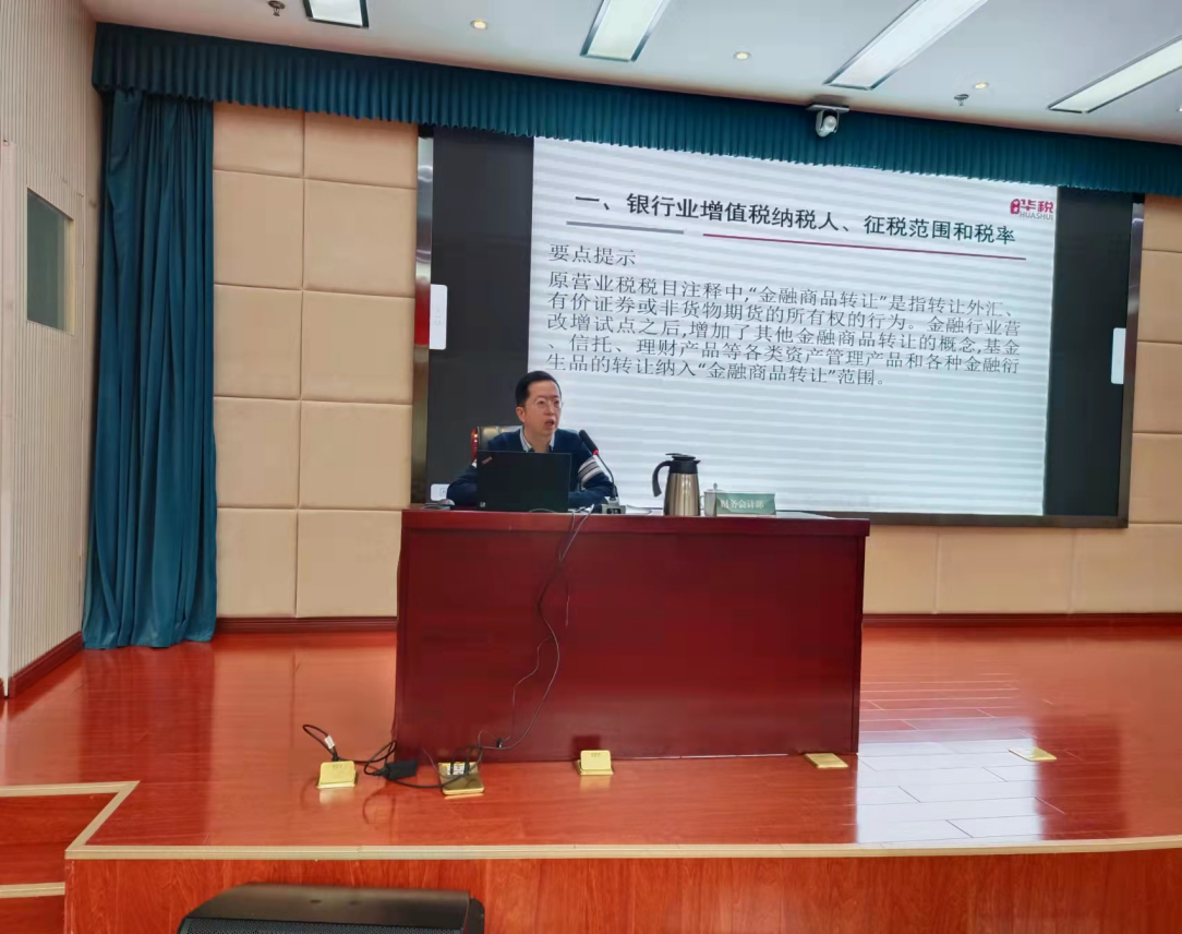 甘肅華稅所長李智勇就農(nóng)業(yè)銀行增值稅及稅務(wù)風(fēng)險管理進(jìn)行了專業(yè)的講解。講解內(nèi)容圍繞以下幾個方面開展:銀行業(yè)增值稅納稅人、征稅范圍和稅率;銀行業(yè)增值稅銷售額;銀行業(yè)增值稅進(jìn)項稅額;銀行業(yè)增值稅稅收優(yōu)惠;銀行業(yè)稅務(wù)風(fēng)險管理。